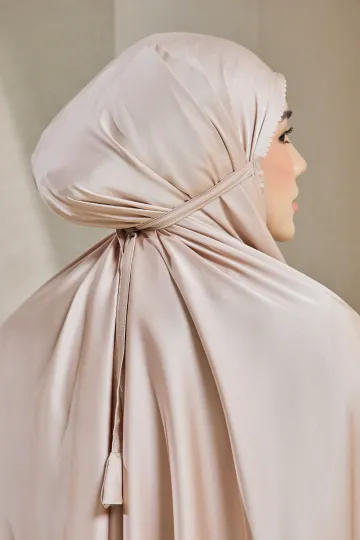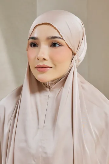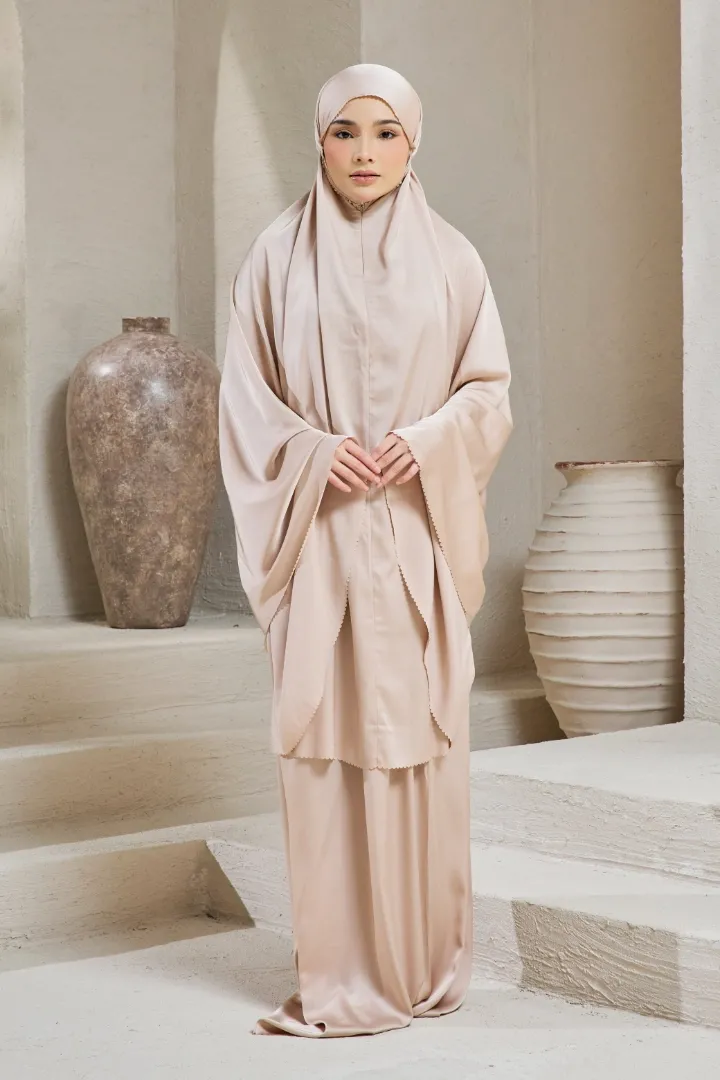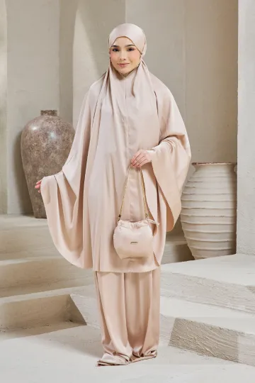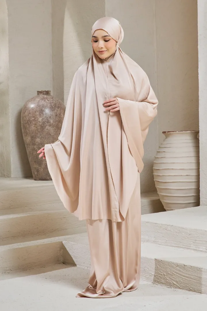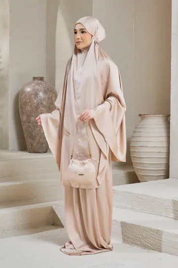 Sakin satin silk travel telekung designed for women who value comfort, proper coverage and a clean beautiful look for prayer anywhere.
