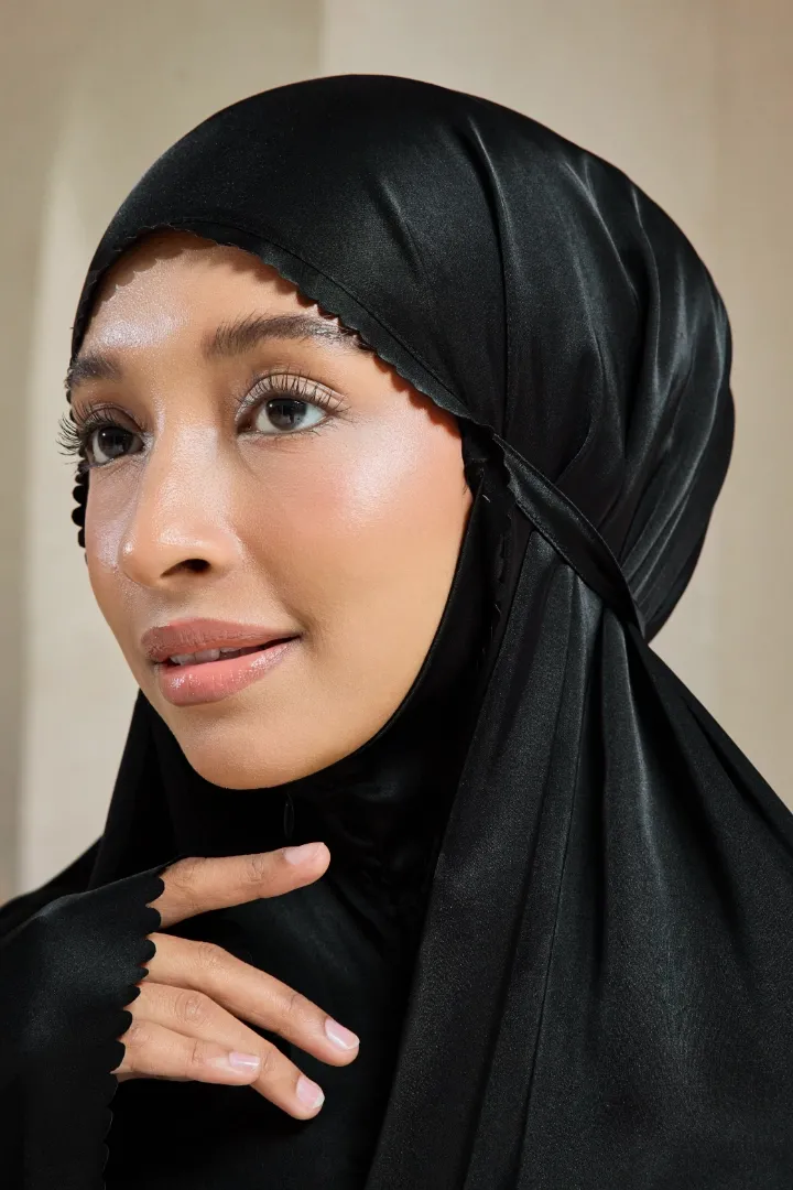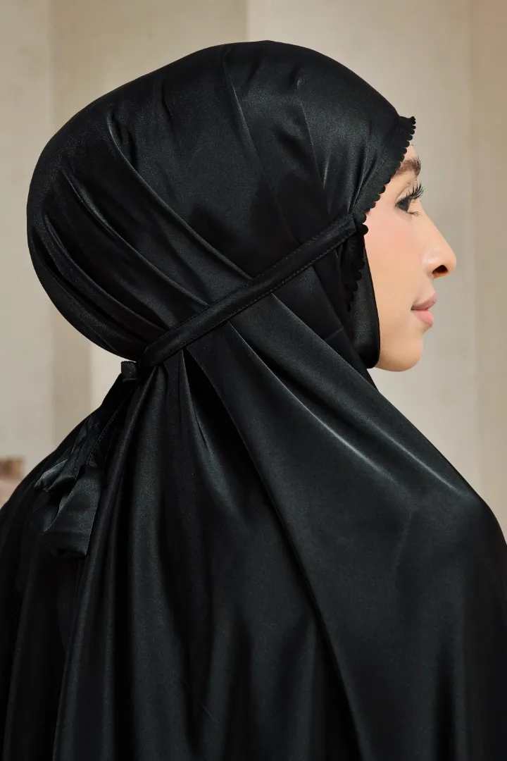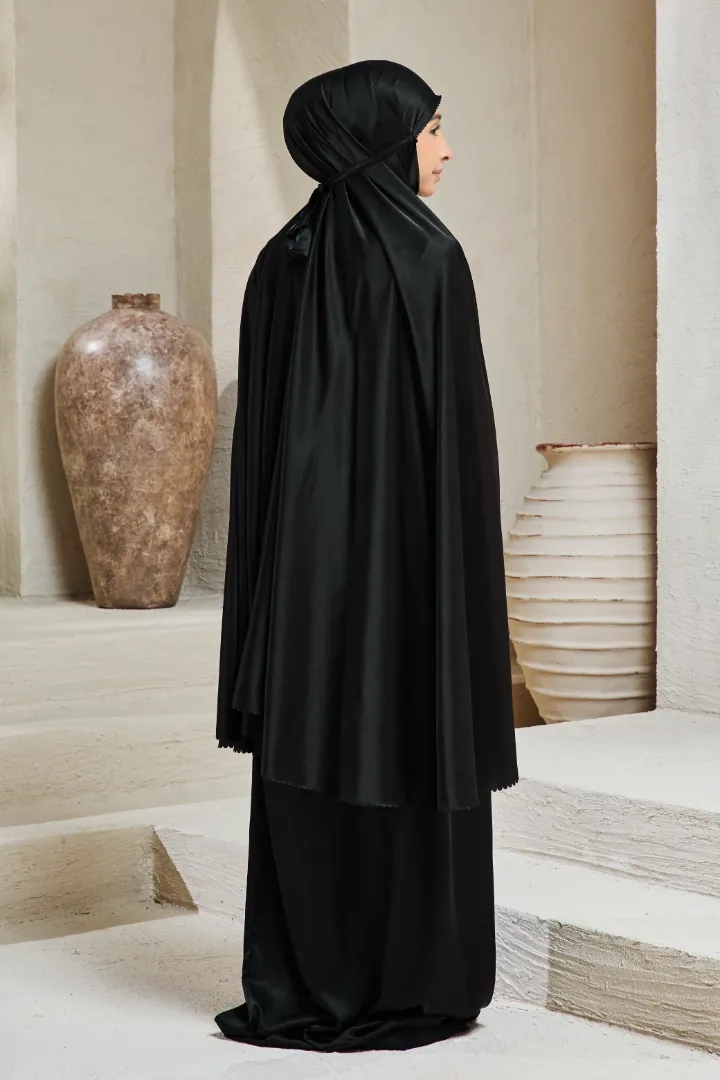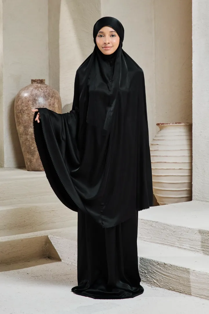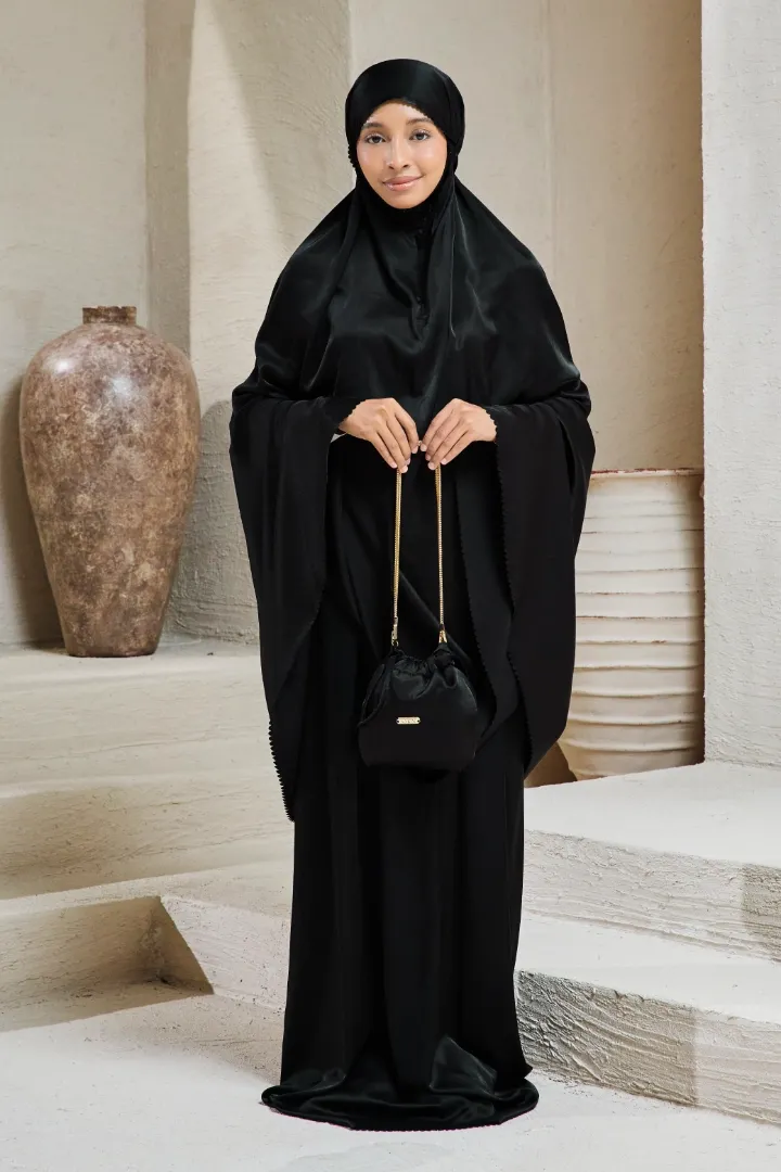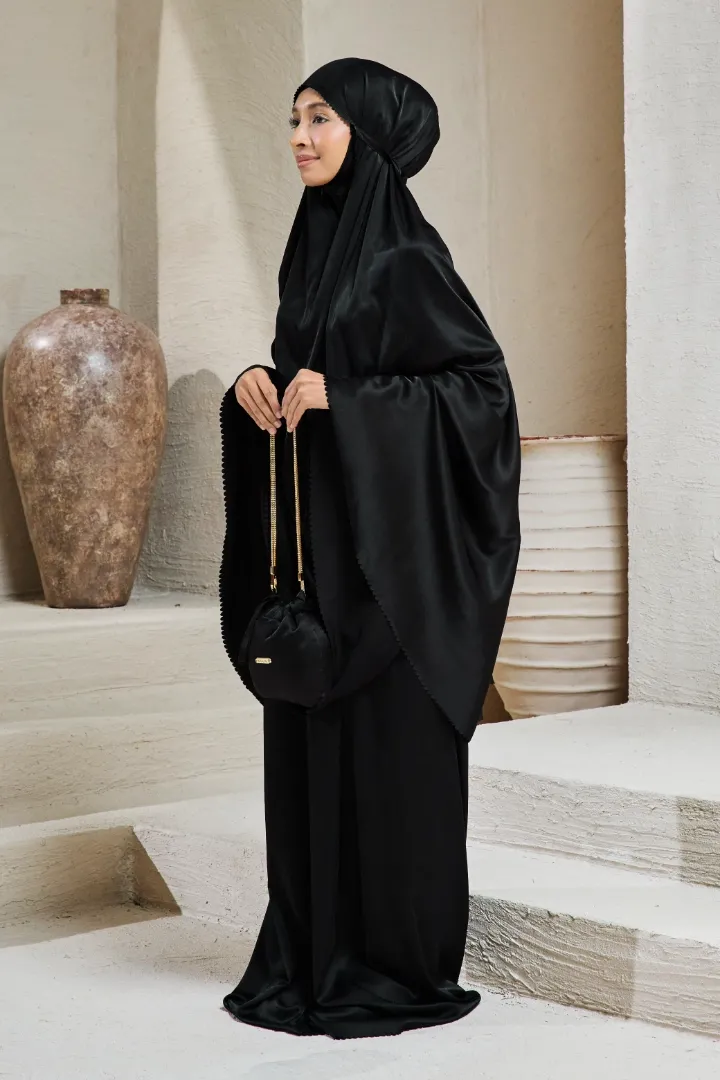 Sakin satin silk travel telekung designed for women who value comfort, proper coverage and a clean beautiful look for prayer anywhere.