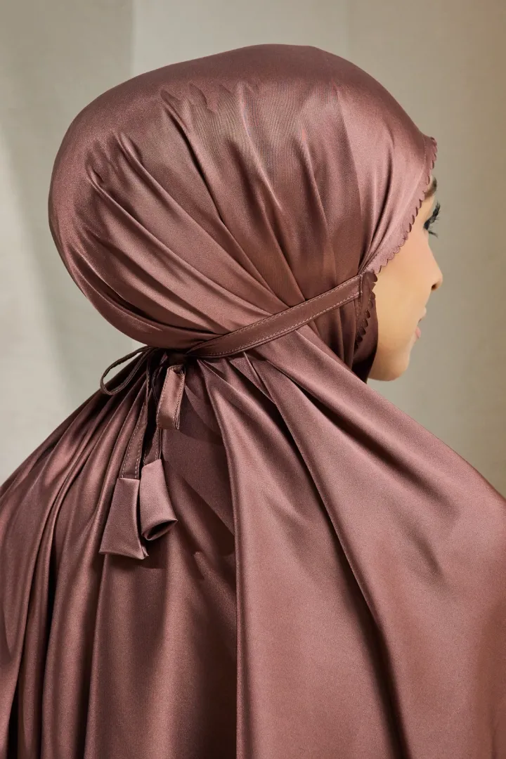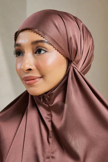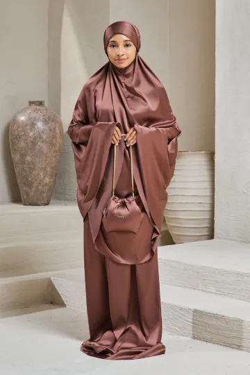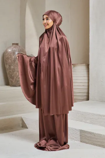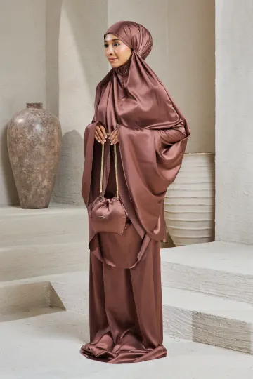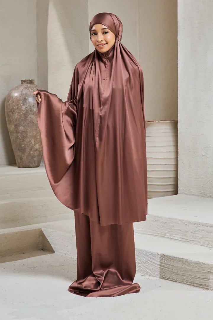 Sakin satin silk travel telekung designed for women who value comfort, proper coverage and a clean beautiful look for prayer anywhere.