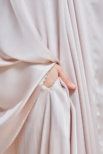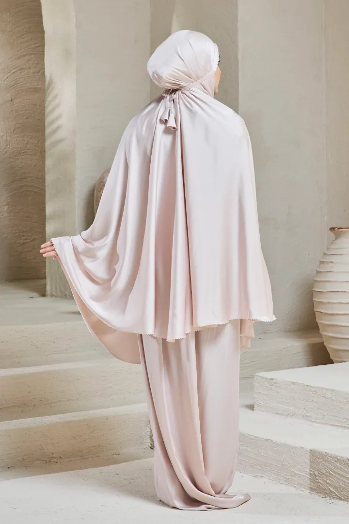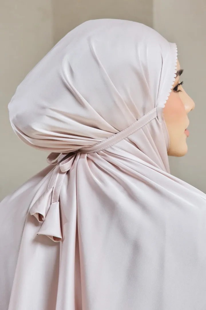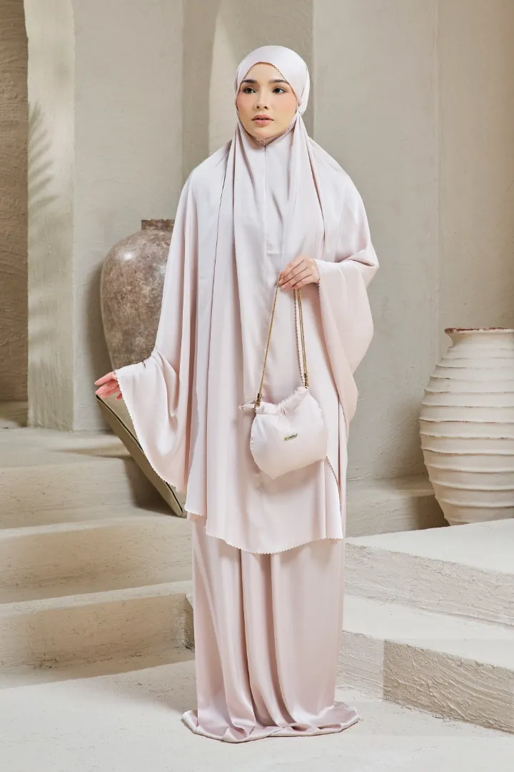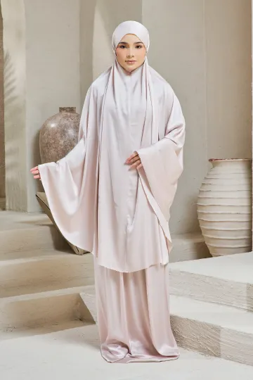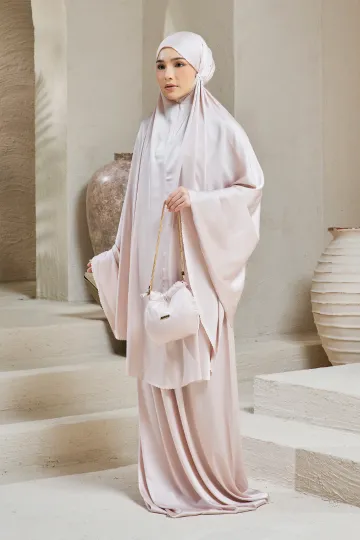 Sakin satin silk travel telekung designed for women who value comfort, proper coverage and a clean beautiful look for prayer anywhere.